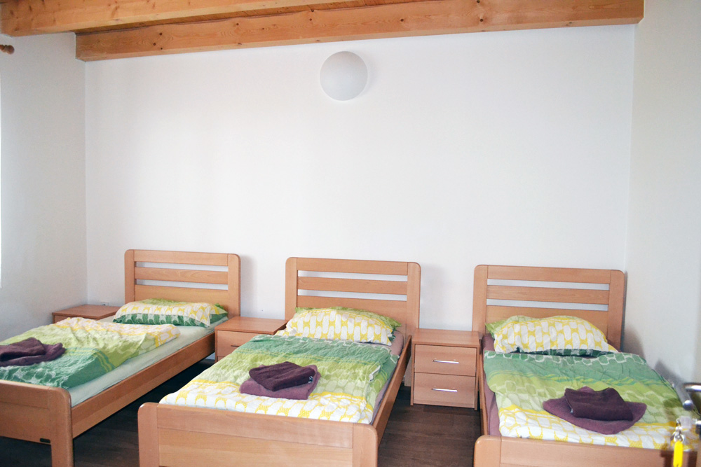 Naše ubytovna je určena k poskytnutí kvalitního zázemí turistům. Ve čtyřech pokojích stejné kategorie je výběr mezi 3, 4 a 5 lůžkovou nabídkou, navíc s přistýlkami, v maximálním množství 5. Celkem je tedy jednorázově možno ubytovat 20 návštěvníků.